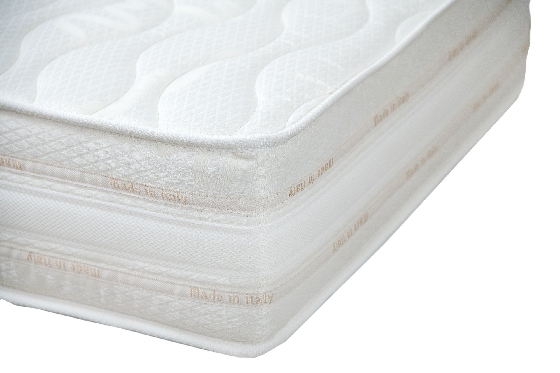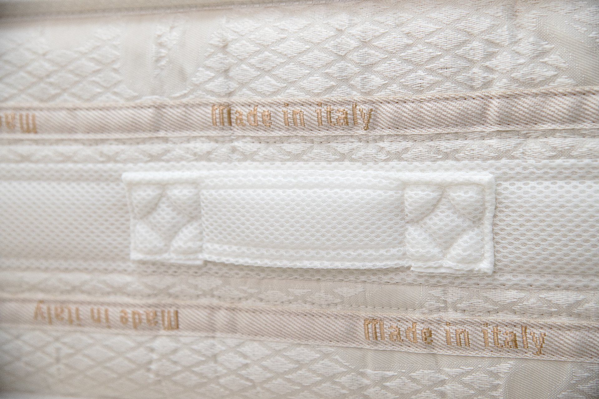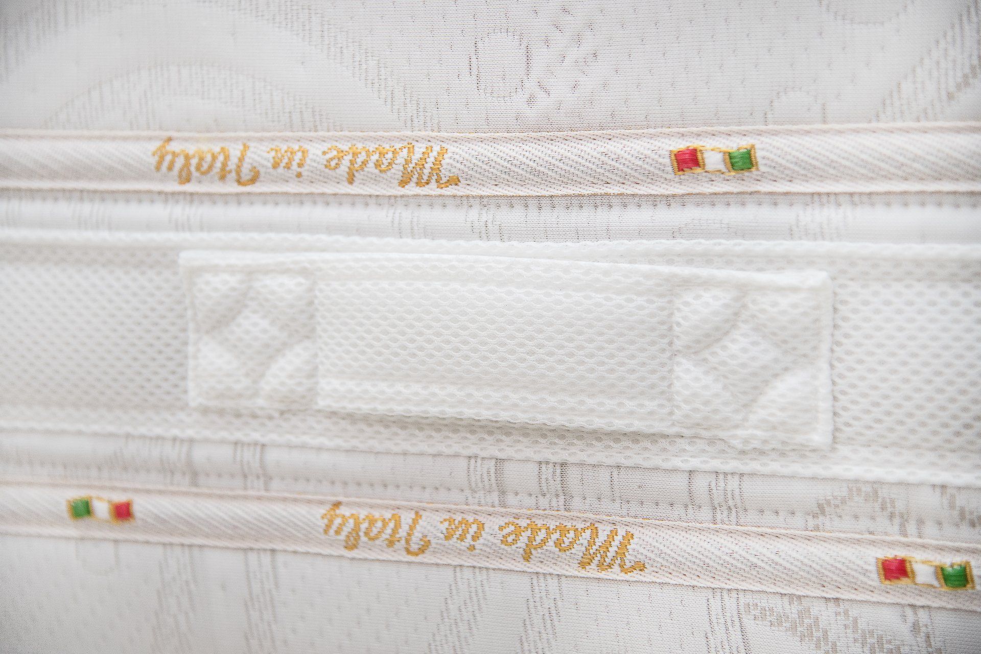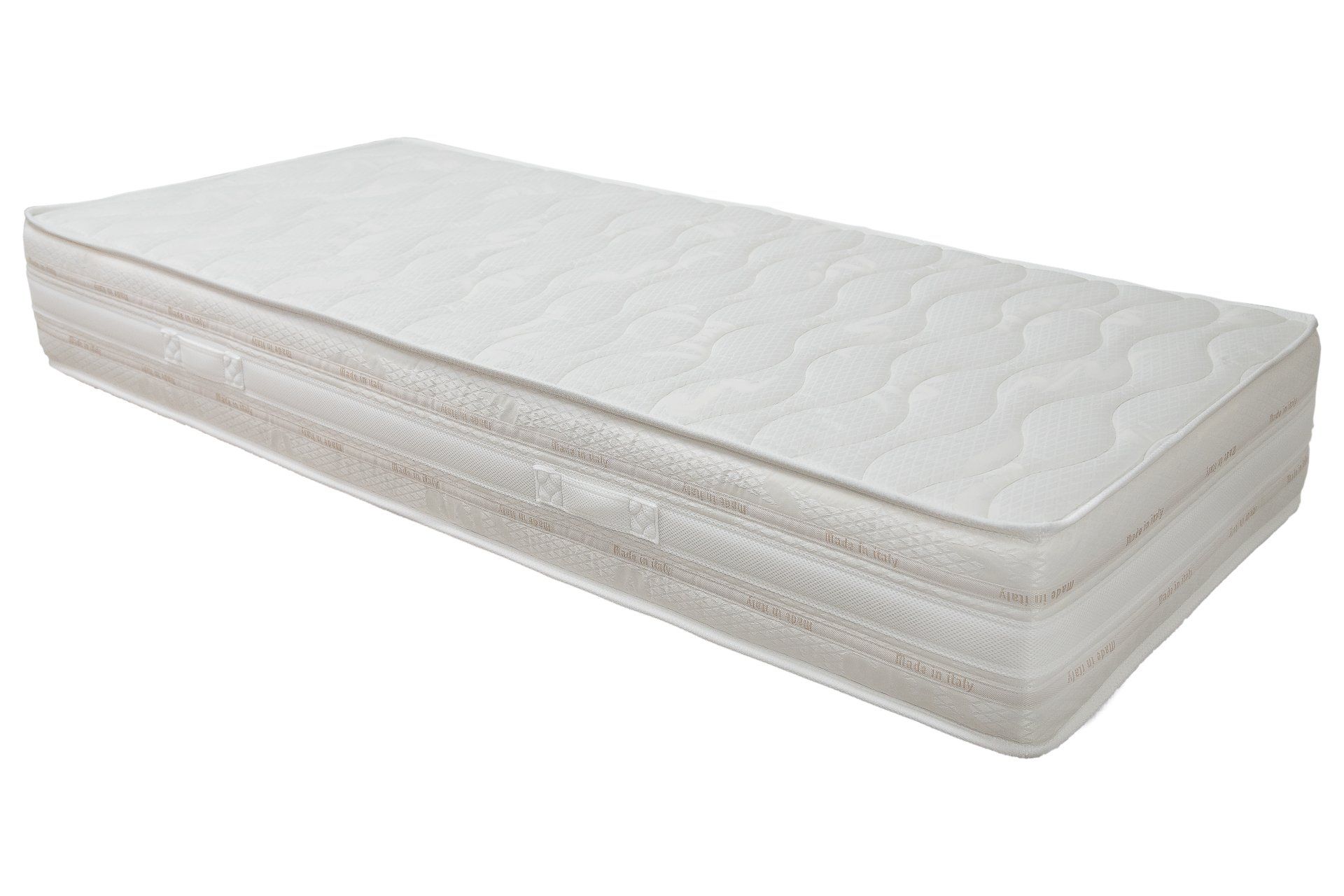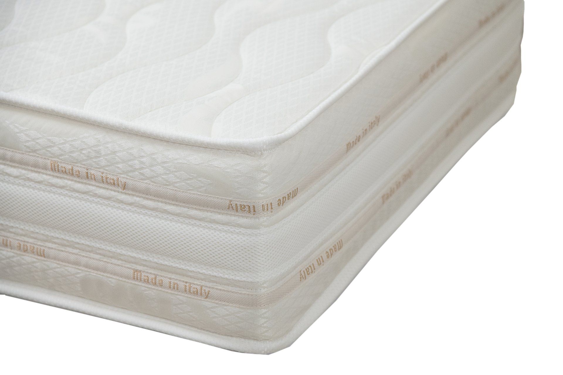 Jacquard fabric upholstery 250gsm, polyester padding 250 gsm. Inner gypsy fabric. Side band in 3D breathable Jacquard fabric with 2 Italian borders.